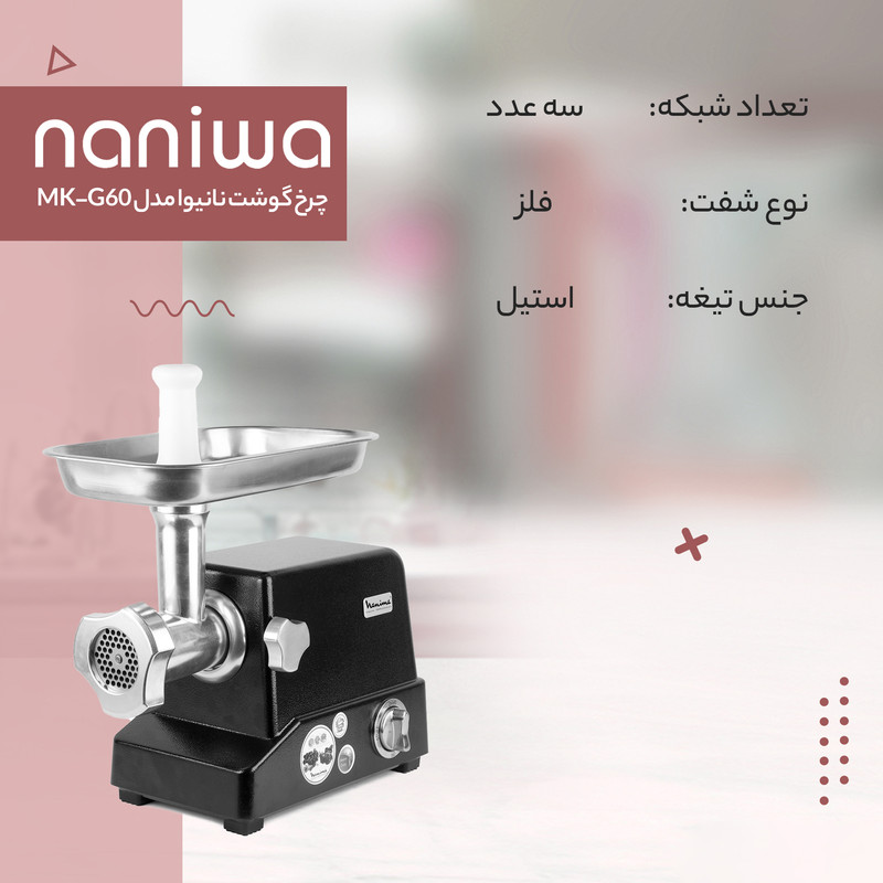 وزن6800 گرمسایر اقلام همراه محصولدارای شبکه سبزی شبکه درشت شبکه ریز سوسیس ساز تیغه دو روژاپنیتوان مصرفی350 وات