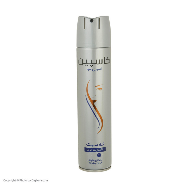 اسپری حالت دهنده مو کاسپین مدل کلاسیک حجم 250 میلی لیتر با پوشش قوی موهایتان را به مدت طولانی در فرم دلخواه نگه خواهد داشت و به صورت طبیعی نشان می دهد و بعد از استفاده چسبندگی ایجاد نخواهد کرد به طوری که قابل شانه شدن خواهد بود. اسپری های مو، حالت تثبیت کنندگی دارند و استفاده از ان ها نسبت به سایر حالت دهنده ها راحت تر بوده و طرفداران زیادی را به سوی خود جلب کرده است. زمانی که موهایتان را شینیون و یا براشینگ می کنید آرایشگر برای این که بتواند حالت مو را به مدت طولانی حفظ کند از اسپری های فیکساتور استفاده می کند، البته این اسپری نه تنها برای آرایشگرها بلکه برای خانم هایی که خودشان اقدام به آرایش مو می کنند مناسب است. این محصول با قدرت پوشش دهی 4 برابر به موهایتان فرم دلخواه را خواهد داد. اسپری کاسپین با اکسیژن رسانی مناسب به موها و پوست سر در برطرف کردن خشکی و شکنندگی مو نیز مؤثر است.