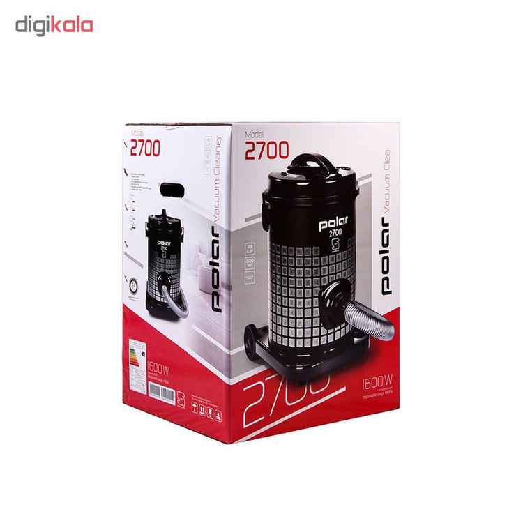 جاروبرقی سطلی پلار مدل 2700 با 1600 وات توان و رده انرژی A یکی از بهترین گزینه ها برای مصرف خانگی می باشد. این جاروبرقی سطلی از فن آوری فیلتراسیون 4 مرحله ای استفاده می کند. این جارو برقی سطلی مجهز به کیسه یک بار مصرف بوده که به راحتی قابل تعویض است. هم چنین شما میتوانید از کیسه های دائمی که روی خود محصول هستند استفاده کنید. این کیسه ها نیاز به تعویض ندارند و شما باید بعد از پر شدن دو سوم کیسه آن را خالی کرده و مجددا در داخل دستگاه قرار دهید.
