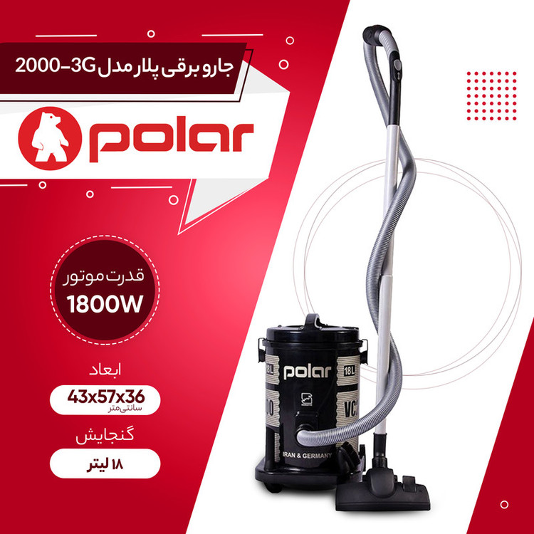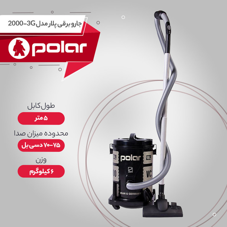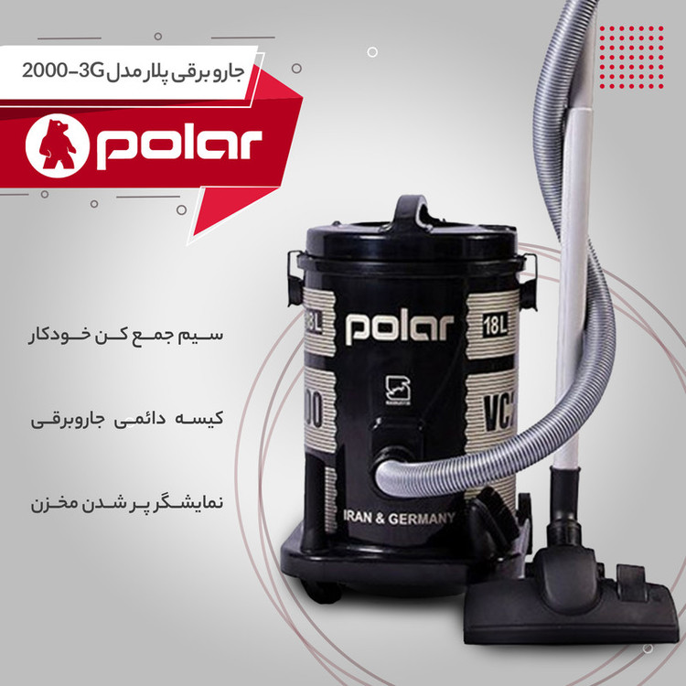 جاروبرقی سطلی پلار مدل 2000 با 1800 وات توان و رده انرژی A یکی از بهترین گزینه ها برای مصرف خانگی می باشد. این جاروبرقی سطلی از فن آوری فیلتراسیون 4 مرحله ای استفاده می کند. جارو سطلی پلار مدل 2000 مجهز به کیسه یک بار مصرف بوده که به راحتی قابل تعویض است. هم چنین شما میتوانید از کیسه های دائمی که روی خود محصول هستند استفاده کنید. این کیسه ها نیاز به تعویض ندارند و شما باید بعد از پر شدن دو سوم کیسه آن را خالی کرده و مجددا در داخل دستگاه قرار دهید.این جارو برقی علاوه بر مکش، امکان دمیدن نیز دارد که میتواند برای تمیز کردن درزها، لب طاقچه ها و مکان های دور از دسترس از آن استفاده کرد. موتور این جارو، تحت لیسانس AEG آلمان تولید شده است.
