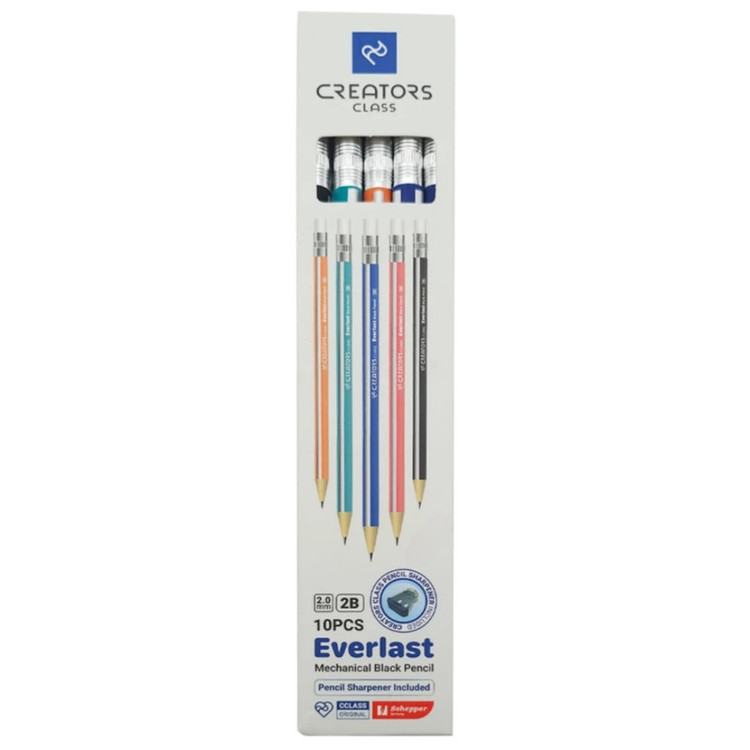 مداد مشکی اتودی سی کلاس یا همون کریتورز کلاس از جدید ترین خانواده و سری محصولات اورلست (everlast) میباشد که همچون مداد رنگی اتودی سی کلاس، از کیفیت ساخت و کارایی بالایی برخور دار هست. این بسته حاوی 10 عدد مداد مشکی اتودی با ضخامت نوک 2 میلی متری (2 میل)، همراه سری پاک کنی و یک تراش 2 روزنه ای برای تیز کردن نوک های این اتود ها میباشد. همچنین پس از اتمام هر مداد میتونید با نوک های 2 میلی متری مشکی و قرمز به راحتی جایگزین و دوباره استفاده کنید.